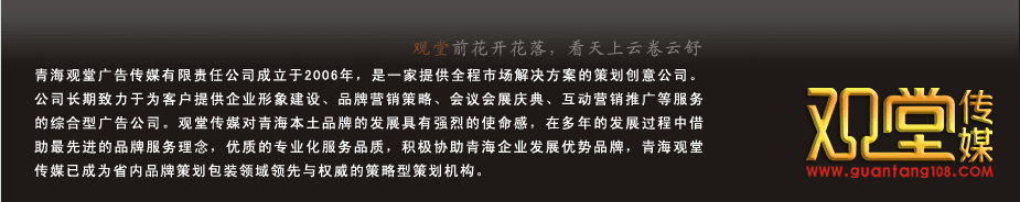 | 青海觀堂傳媒是一家專業從事西寧VI設計,西寧畫冊設計,西寧標志設計,西寧廣告設計,西寧包裝設計,西寧平面設計,西寧宣傳冊設計,西寧會議會展,西寧戶外廣告等類型的綜合廣告傳媒公司。 地址:西寧市城西區黃河路14號威斯汀酒店8樓(城西區第三產業中心D008) 電話:0971-6111986 手機:13734686000 Copyright 2006-2012 青海觀堂廣告傳媒有限責任公司 All Righths Reserved 備案信息:青ICP備13000327號-16 |